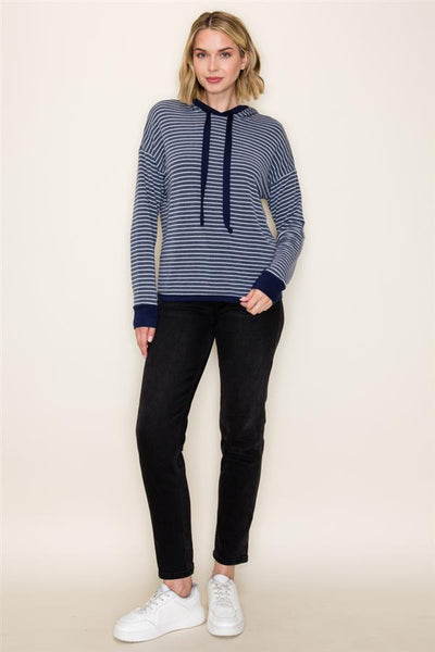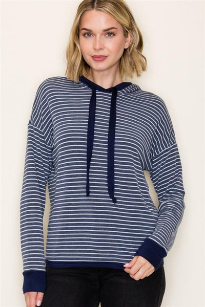 Long Sleeve Striped French Terry Hoodie Top