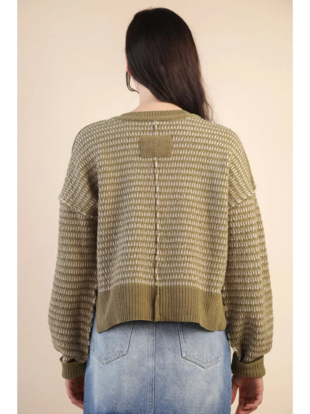 Two Tone Textured Knit Casual Sweater Top - Oversized - Drop Shoulder - Long Sleeve - Round Neck - Ribbed Hem - Side Slit