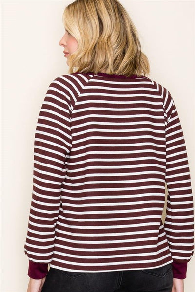 Vneck Seersucker Striped Knit Top