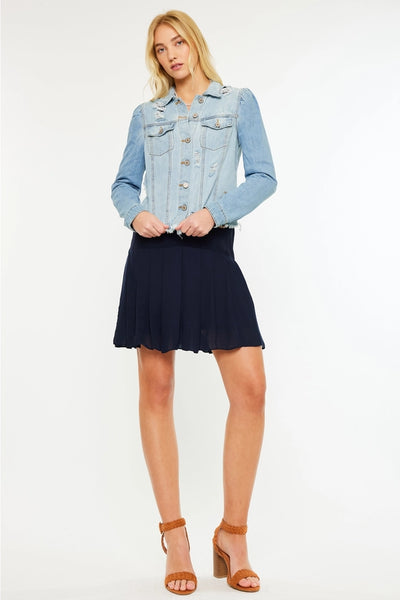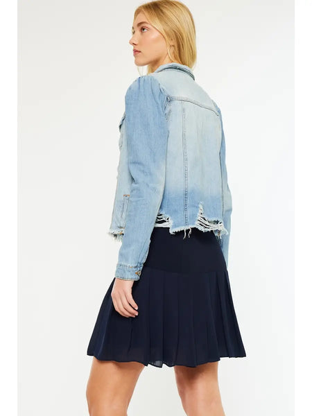 Princess sleeve denim jacket Light wash Rigid Princess puff sleeve with facing inside